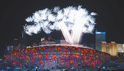 夜幕下的国家体育场华灯璀璨、美轮美奂,这座以鸟巢造型闻名于世的建筑,即将创造历史,成为世界上首座举办过冬奥会和夏奥会“双奥”开幕式的体育场馆。