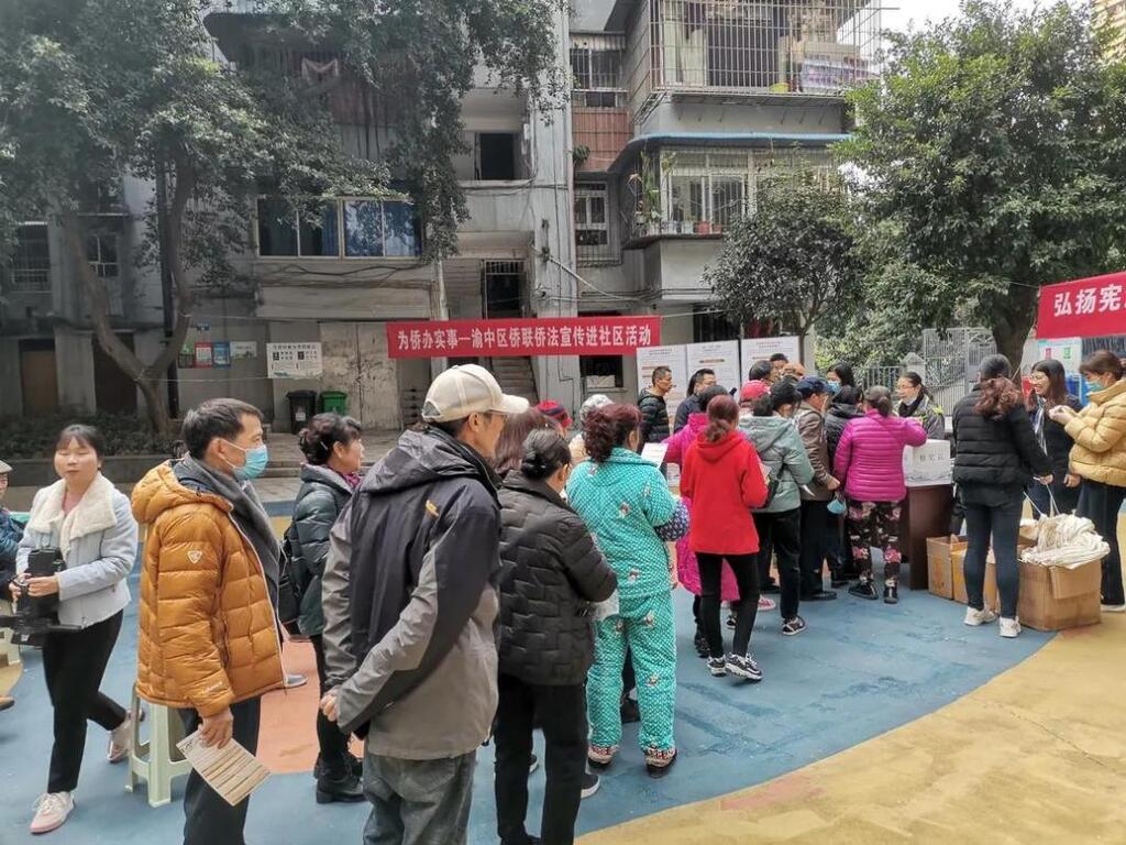 渝中区侨联结合中山二路社区和化龙桥企业天地园区的实际情况,采用现场宣讲、发放宣传页及有奖答题的方式为广大侨界群众进行宪法、法规基本知识的宣传。邀请律师为居民提供法律咨询服务,并发放《侨务政策宣传手册》等资料500余份。