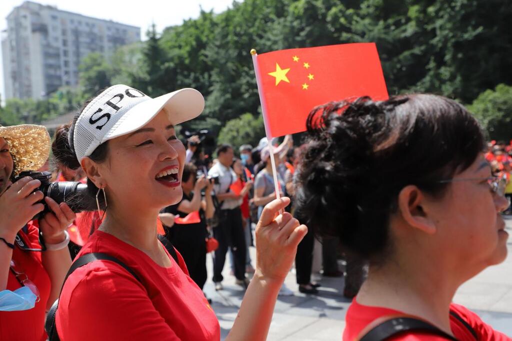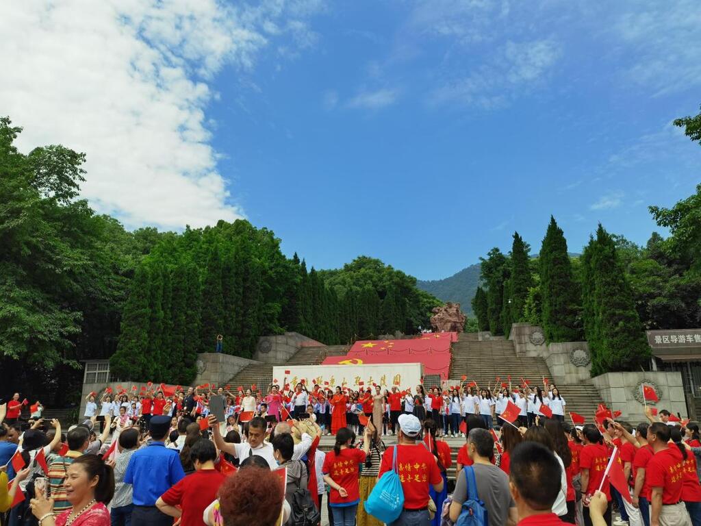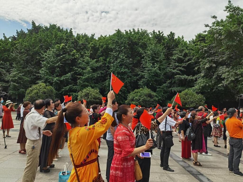 一位华侨老人来到红岩魂广场,站在归国华侨烈士纪念碑前长久瞩目。“红岩上红梅开,千里冰霜脚下踩,三九严寒何所惧,一片丹心向阳开向阳开......”一曲朴实婉转而又高亢坚定的《红梅赞》在红岩魂广场响起,400多名侨界群众代表手持国旗,从四面八方汇聚在一起,象征着侨心永远围绕着党,侨界群众听党话、跟党走的决心和信心。不少现场群众和游客也一起加入其中,大家用歌声尽情抒发对党、对祖国的深深热爱。