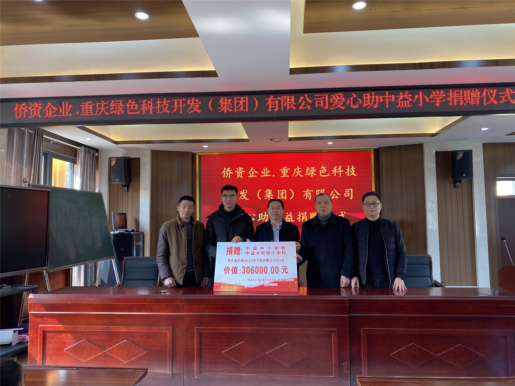 3月4日,为助力巩固拓展脱贫攻坚成果,不断深化新时代侨联公益活动,重庆市侨联副主席邓明鉴协调重庆绿色科技开发(集团)有限公司,向重庆市石柱县中益乡小学、官田小学捐赠价值30万元的LED学习护眼灯600盏,为山区儿童送去光明和温暖。