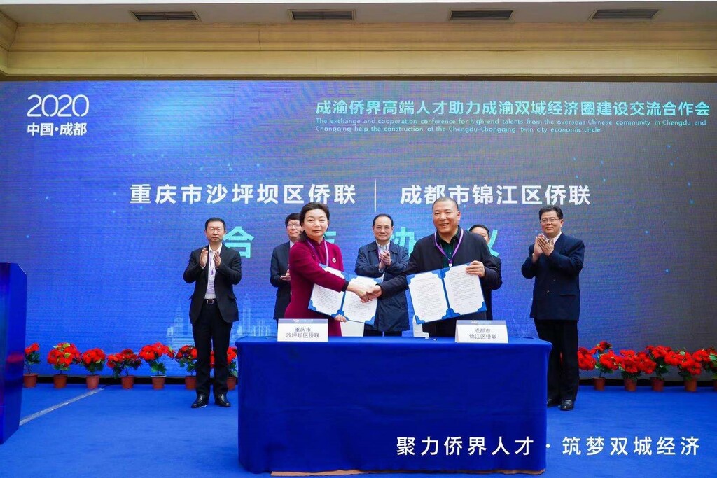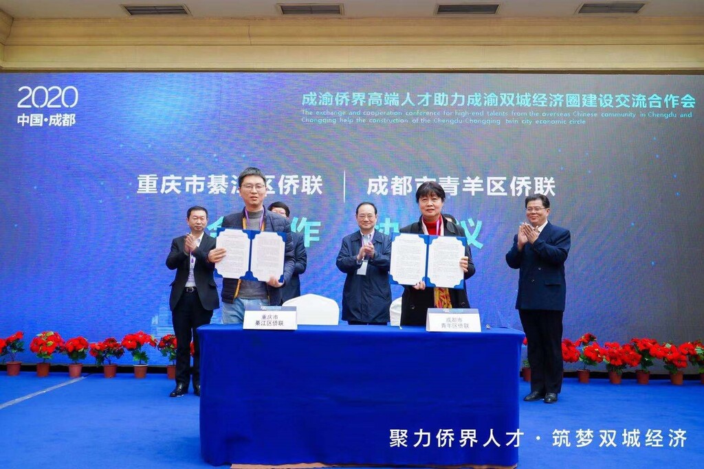 会上,在四川省侨联、重庆市侨联以及成都市侨联领导的见证下,重庆市綦江区侨联和成都市青羊区侨联、重庆市沙坪坝区侨联和成都市锦江区侨联分别签署了《友好合作协议书》,进一步促进两地基层侨联更深层次的工作交流、文化沟通、信息互动、资源共享,推动侨界资源加快融入和推进成渝地区双城经济圈建设。