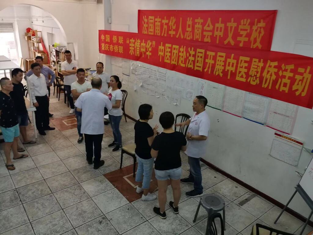经中国侨联和重庆市政府同意,2019年9月1日至8日,重庆市侨联组织“亲情中华”中医团前往法国巴黎、马赛和西班牙巴塞罗那、马德里开展慰侨义诊活动。这是侨联首次组织中医团到海外开展慰侨义诊活动,当地侨胞纷纷前往咨询诊疗,场面热烈,好评如潮,活动取得圆满成功。