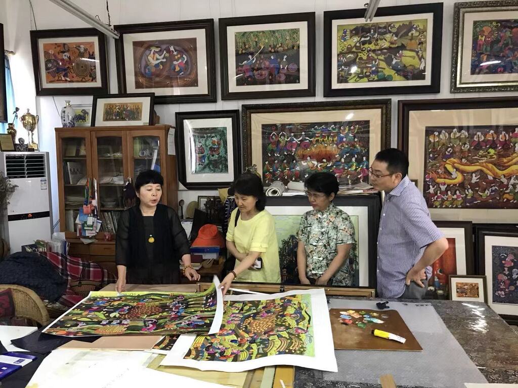 ▲邢研庄副部长一行与綦江农民版画创作者李成芝交流