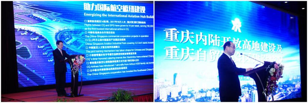 开幕式上,重庆市商务委、重庆中新示范项目管理局有关负责同志分别向来渝侨商介绍重庆内陆开放高地、自由贸易试验区和中新互联互通示范项目建设情况。