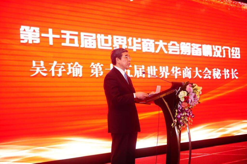 第十五届世界华商大会秘书长吴存瑜向嘉宾介绍第十五届世界华商大会筹备情况。